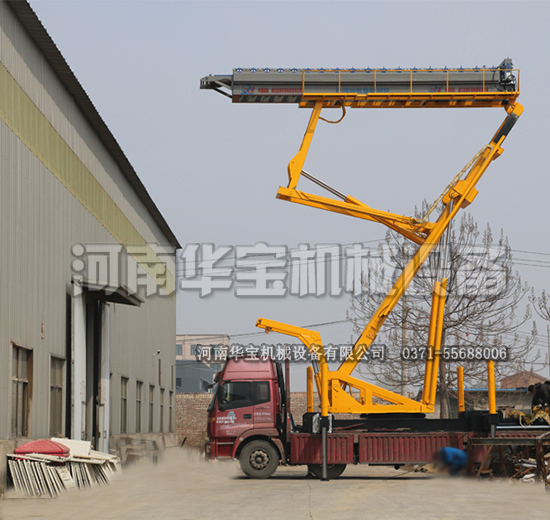 平衡油缸伸出,連桿平衡機(jī)構(gòu)上方的壓瓦機(jī)的一起抬起,可以實(shí)現(xiàn)與水平面保持有一定的夾角,以適應(yīng)廠房頂坡度,伸縮油缸伸出,伸縮臂架伸長(zhǎng),能夠快速調(diào)整壓瓦機(jī)的高度,到達(dá)需要的高度后,啟動(dòng)壓瓦機(jī),實(shí)現(xiàn)屋面壓瓦和運(yùn)輸?shù)男Ч?,施工完畢后,卸下彩鋼卷,將各個(gè)部位收回到工作之前的狀態(tài)中去,這樣就能方便運(yùn)輸和轉(zhuǎn)移施工地點(diǎn)啦。